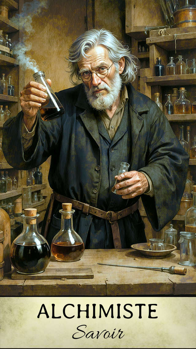 Dans cette vie ancienne, vous étiez alchimiste. Solitaire et passionné, vous passiez votre temps à expérimenter, à consigner vos observations, et à chercher dans la matière les lois invisibles de l'univers. Votre quête allait bien au-delà de la transformation du plomb en or : vous aspiriez à une connaissance totale de la nature des choses.